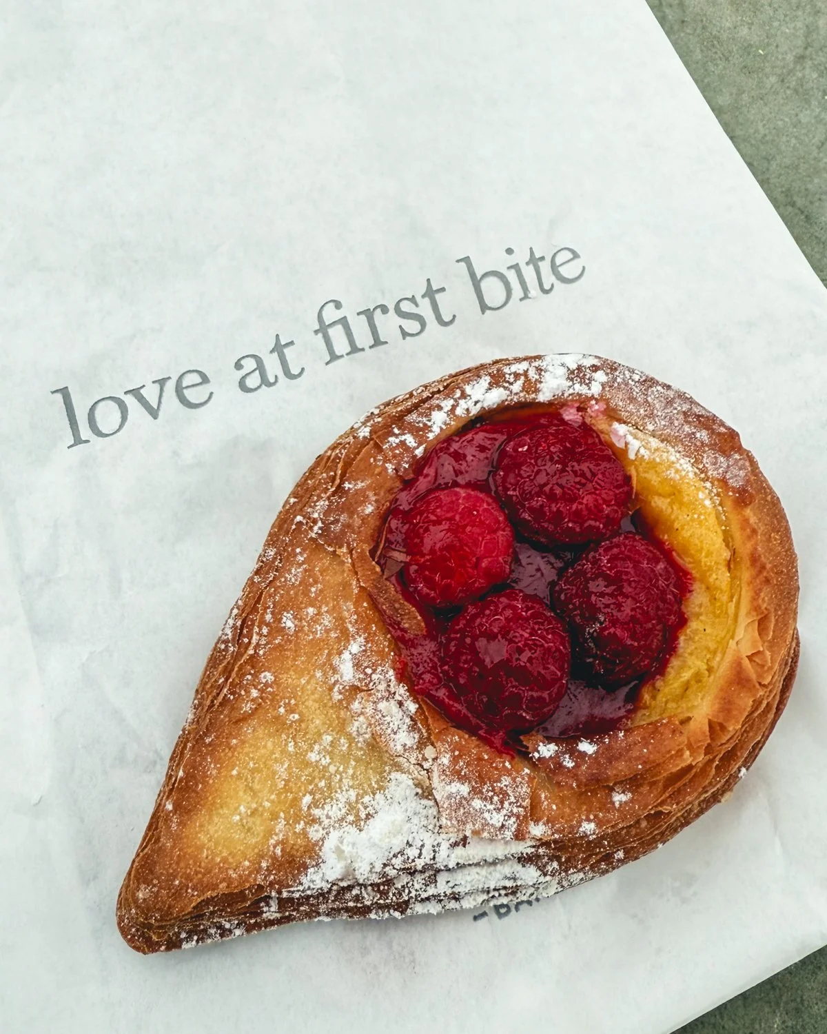 Raspberry & Vanilla Custard Croissant from Marks & Spencer’s Food Hall on Princes Street, Edinburgh, Scotland.