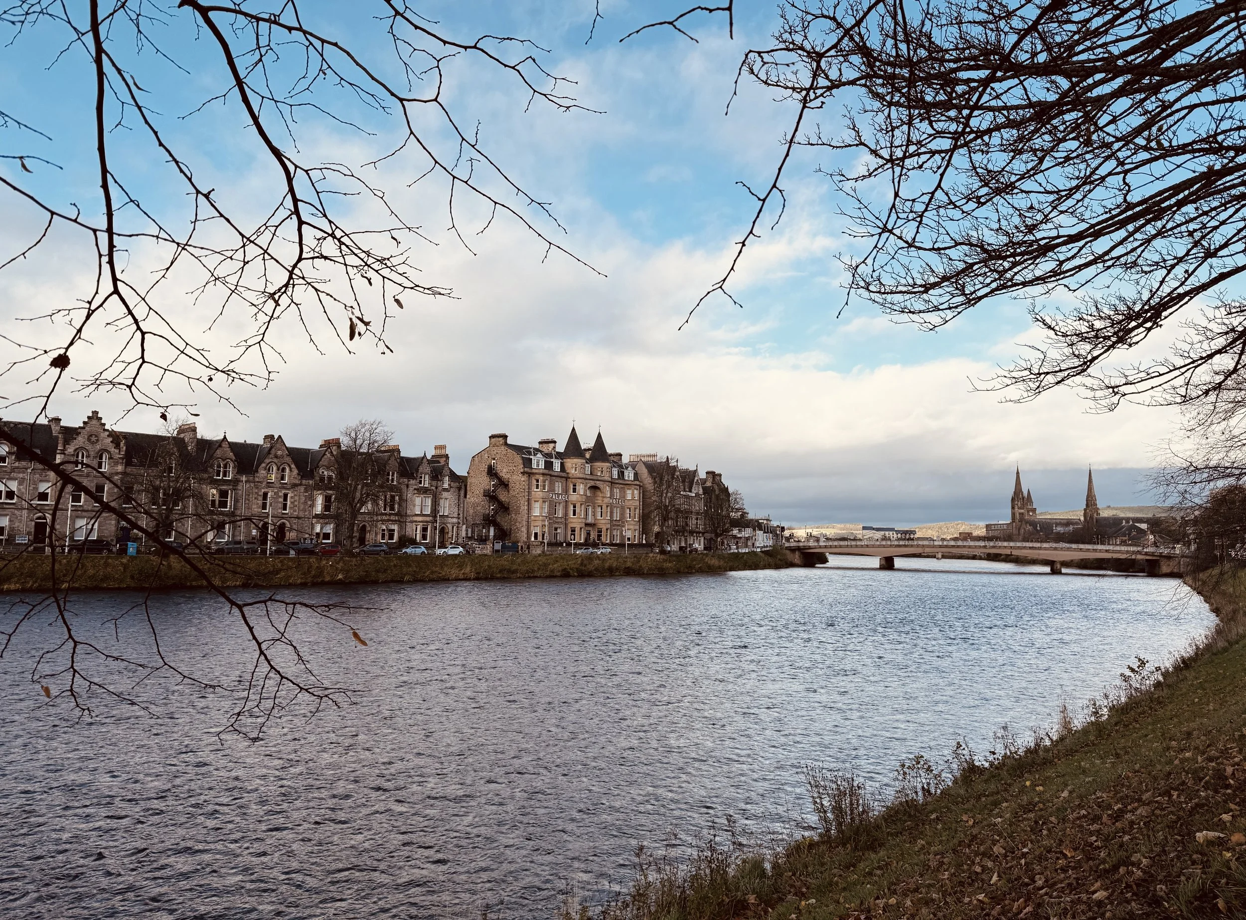 If you walk along the bank of the river you’ll be able to access footbridges in either direction to get to the other side. A good walk is to walk towards Ness Bridge, then turn onto Ardross Terrace, towards the Infirmary Bridge, cross over to Great Glen Way, and back towards Ness Bridge. Once back at the bridge you can cross and continue to the next bridge, and make a loop. Or you could take a right at the bridge, this will put you in the center of shops and restaurants.